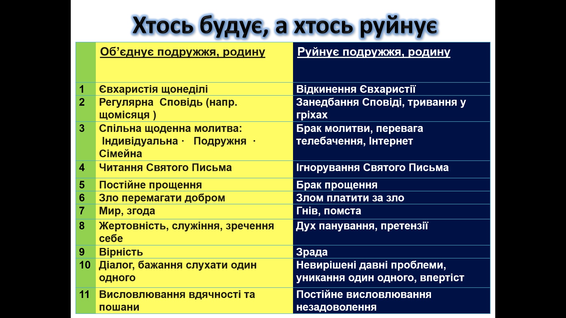 Б) СЛАЙДОВИЙ ВАРІАНТ відеозаняття “Етика родинного життя. Родина – домашня Церква.”: