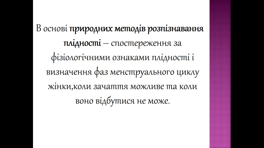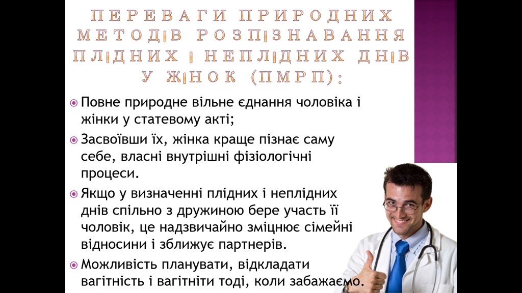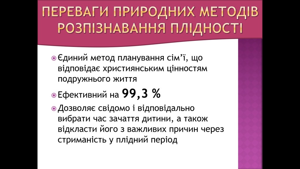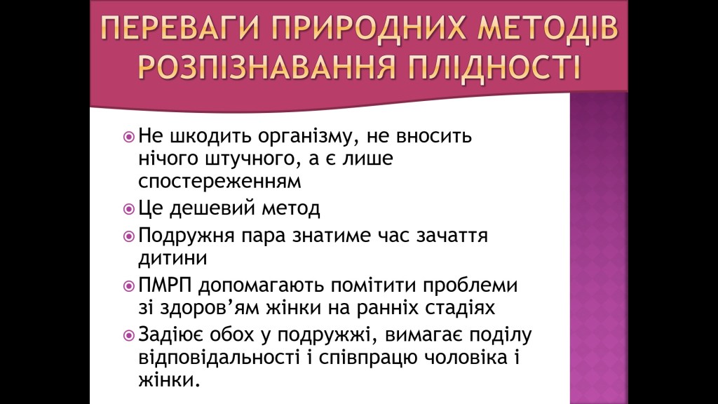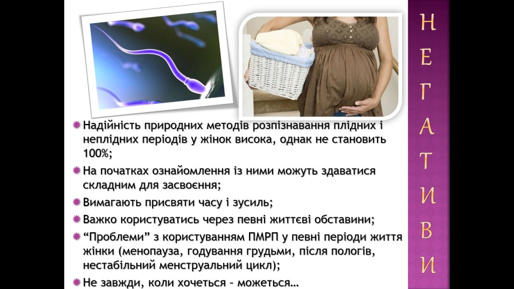 «мінус» Надійність природних методів розпізнавання плідних і неплідних періодів у жінок висока, однак не становить 100%;
