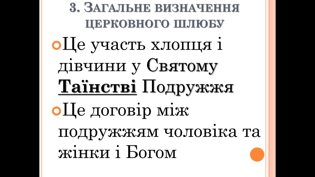 Беручи церковний шлюб, чоловік та жінка приймають одне з семи церковних Таїнств – Святе Таїнство Подружжя. Слово “Таїнство” означає щось недоступне для людських чуттів, але реальне, присутнє і дієве. Це староукраїнське слово варто розуміти просто: як Божу присутність поруч із людиною, в самій людині чи людях, котра чи котрі приймають таїнство, і Божу дію. Таїнство Подружжя – це Божа присутність і дія від тепер і навіки. Цим і різняться шлюбовані подружжя від нешлюбованих, яких, на жаль, все більшає. У житті перших Бог активно присутній та активно діє. У других Він теж активно присутній, зате не діє, адже заблокований негідним співжиттям обох.